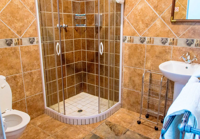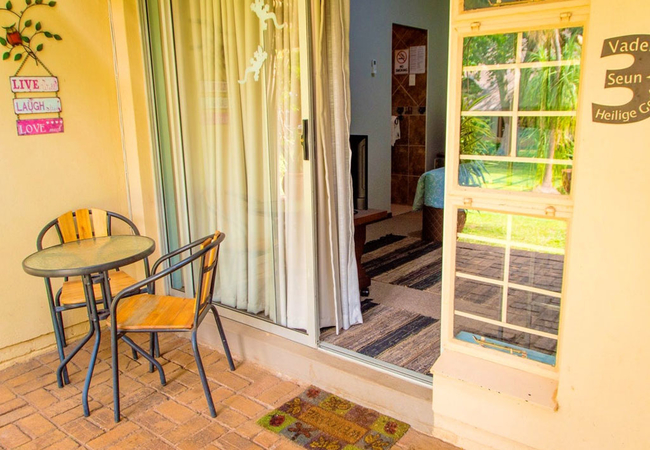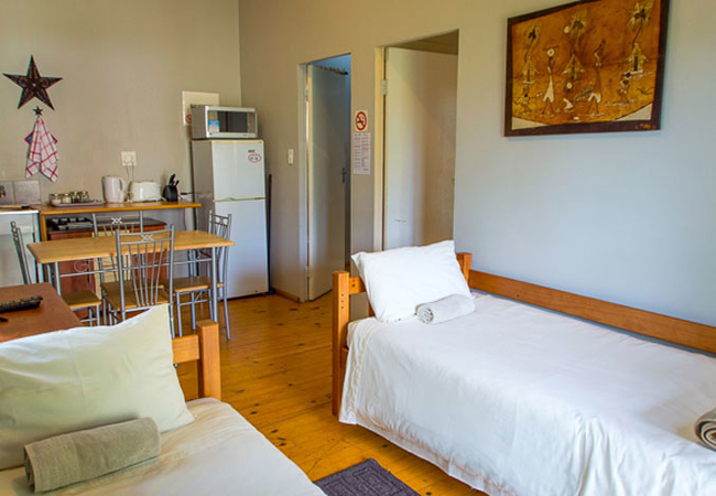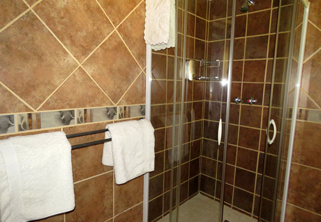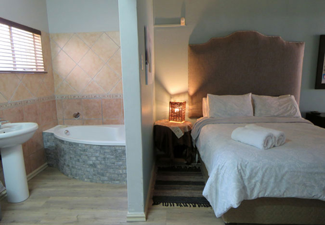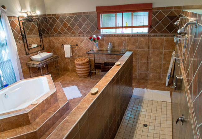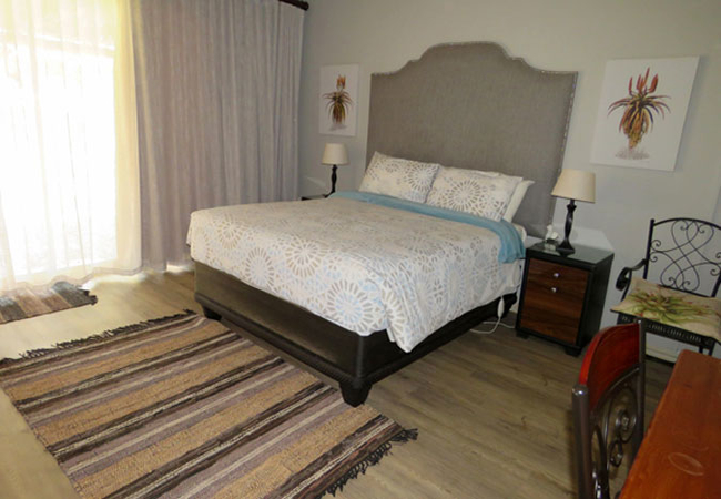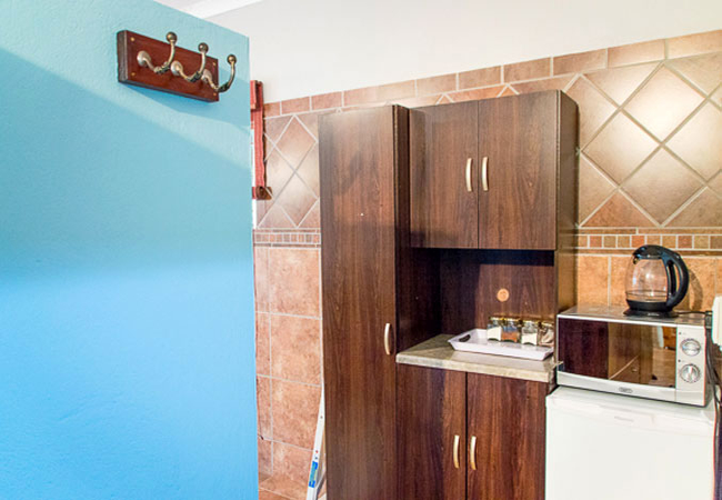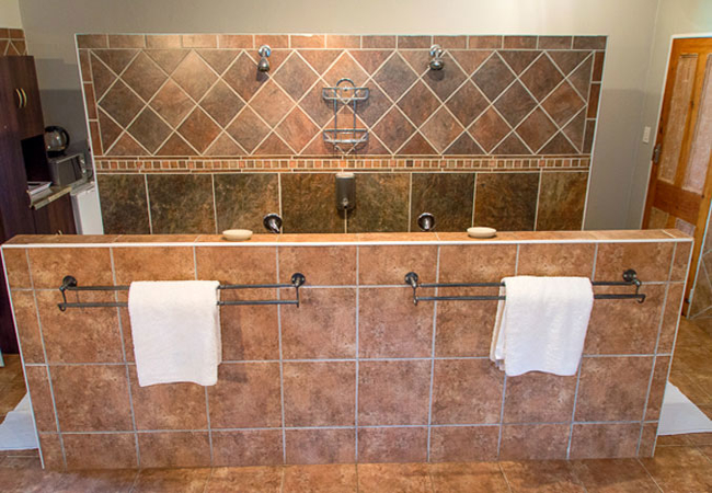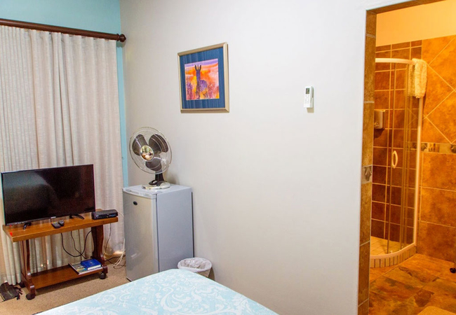 Our Master Bedroom has a private bathroom with a twin shower and toilet. You will have your own private entrance from the patio, and the room is equipped with a Queen-size bed, air-con, DStv, fan, refrigerator, microwave and coffee / tea station.