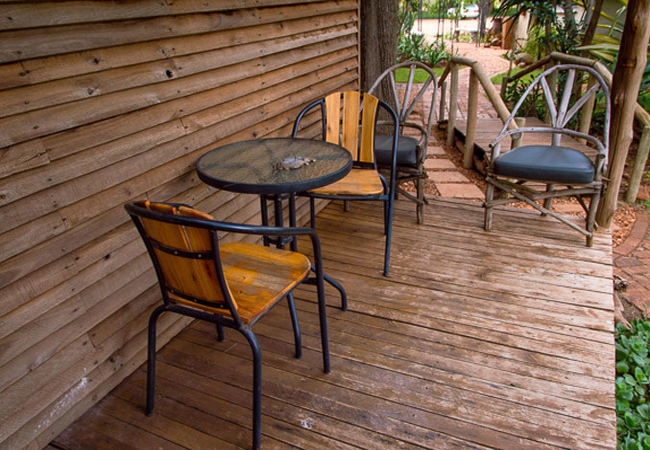 These cosy wooden cottages consist of one bedroom, open living room, a private bathroom with a toilet and a shower. There is a double bed and a bunk bed or single beds perfect for families. A small kitchenette that is equipped with a refrigerator, sink, microwave, toaster, kettle and a TV in the open living area. There are an air-con and fan in each cottage.