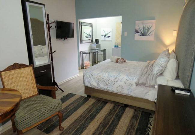 Executive Guest rooms have a private shower and toilet. Guests will have their own private entrance from the patio and the room is equipped with double bed or Queen-size bed, air-con, DStv, fan, refrigerator, microwave and coffee / tea station.