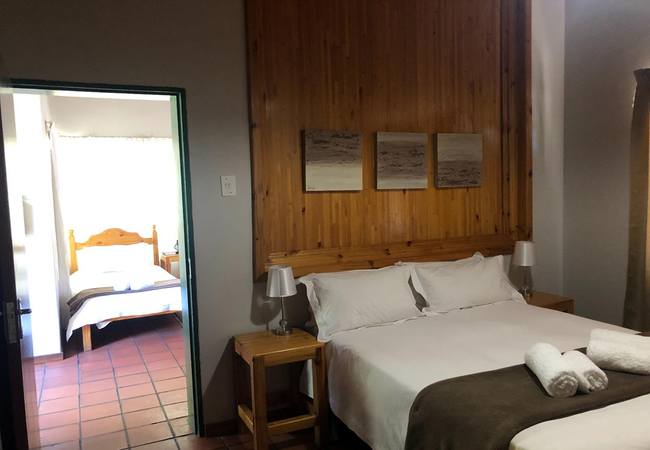 Double bed with 2 single beds. Each room is equipped with air conditioning, a bar fridge, coffee and tea making facilities and private braai (BBQ) facilities. Guests have access to gym facilities and the swimming pool.
