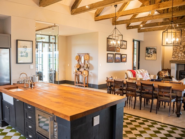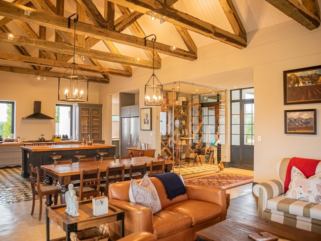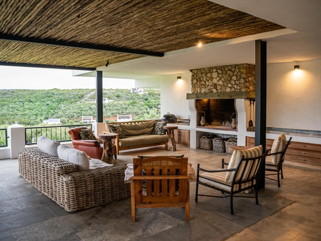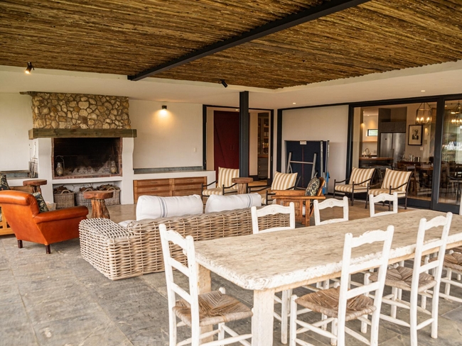 Die Boord offers stylish, modern accommodation with a focus on comfort and relaxation. The house features three bedrooms and three bathrooms, a spacious lounge, dining area, and a rustic kitchen, comfortably accommodating up to six guests. A large patio and braai area provide exceptional views of the Goukou River, creating the perfect setting for outdoor dining or unwinding in nature.