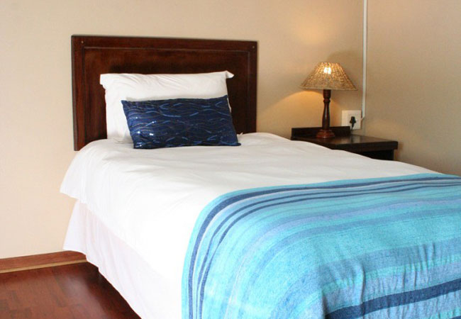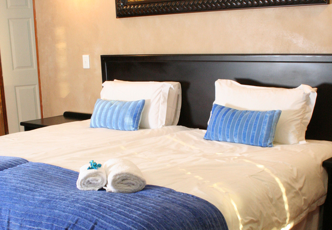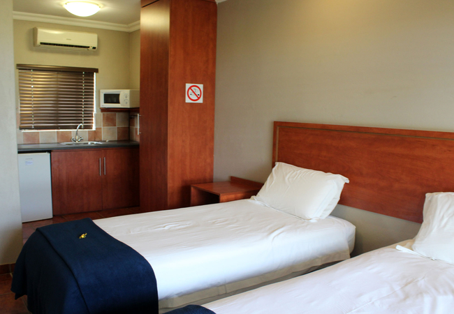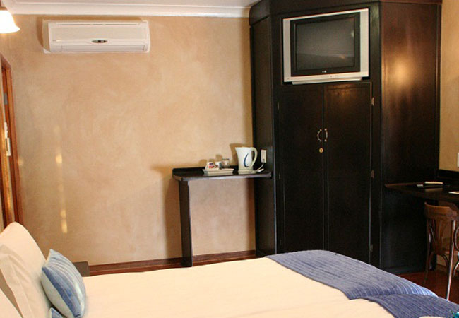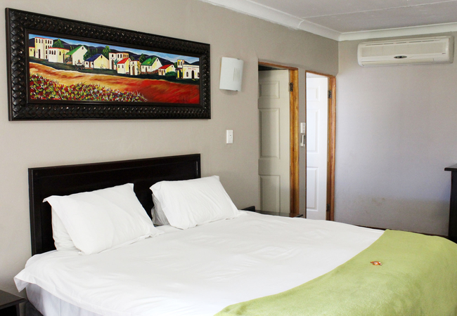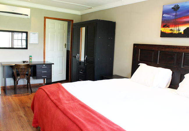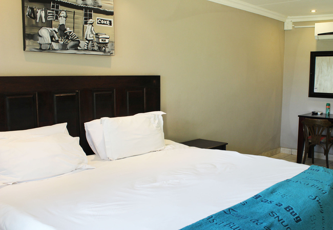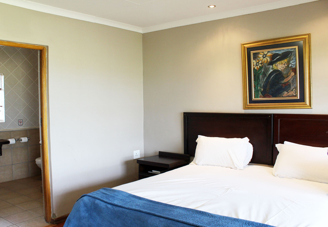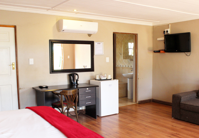 Our economical rooms are furnished with a Queen-size bed. The en-suite bathroom is equipped with a shower only. Each room is equipped with air-conditioning, a TV with selected DStv channels, and tea and coffee making facilities.