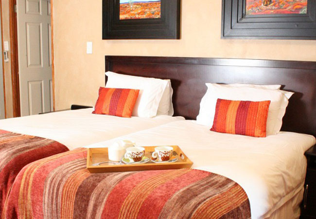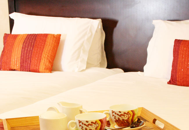 Our standard rooms have a king size bed that can be split into two single beds and a bathroom with a shower and bath. Each room is equipped with air-conditioning, a TV with selected DStv channels, and tea and coffee making facilities.