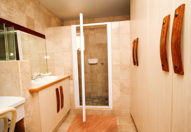 This unit is separate from Unit 1 but also only a stone's throw from the beach. It comprises two bedrooms and two bathrooms, one of which is en-suite. The main bedroom is furnished with a double bed and the second bedroom has two three-quarter beds.
