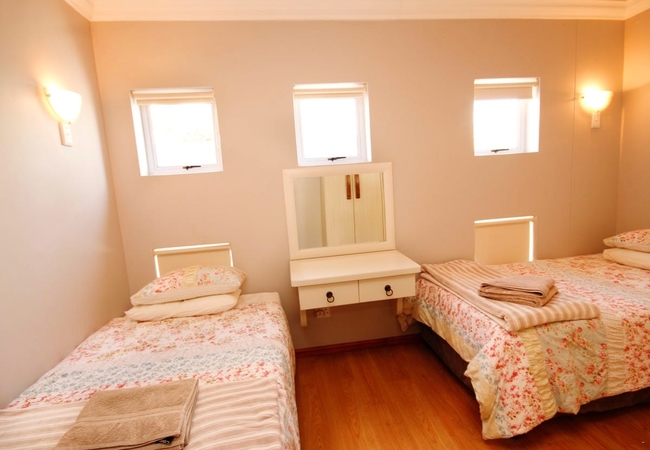 This unit is separate from Unit 1, but also only a stone's throw from the beach. It comprises two bedrooms and two bathrooms, one of which is en-suite. The main bedroom has a double bed and the second bedroom has two three-quarter beds.