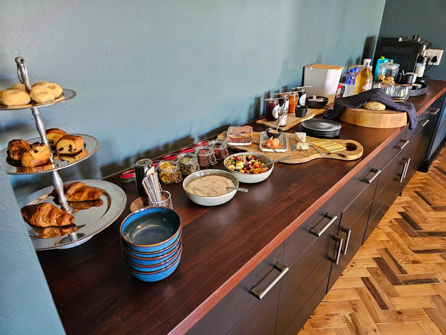 Die Heerenhuys boasts an array of facilities designed to enhance guests' sojourns. These include a welcoming lounge with a fireplace, fitness facilities, an outdoor swimming pool, and secure parking. The expansive communal living and dining areas, adorned with warm accents, offer inviting spaces for relaxation, social interaction, or quiet contemplation of the serene environs.