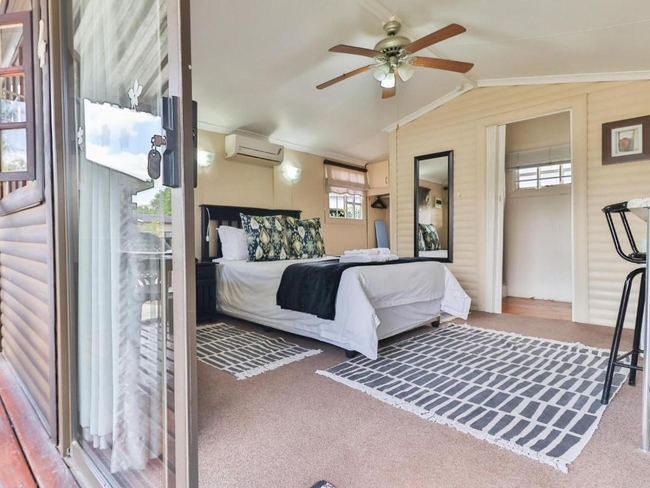 This comfortable room is furnished with a queen-size bed and features a private en-suite bathroom with a shower. Designed for ease and relaxation, it offers air conditioning as well as a ceiling fan to ensure a pleasant stay throughout the year. Guests can enjoy a television with DStv, make use of the desk, and stay connected with complimentary Wi-Fi. For added convenience, the room includes a bar fridge, microwave, and coffee and tea facilities, allowing for simple in-room refreshments. The space is non-smoking and fitted with non-feather pillows, with fresh towels provided. The room opens onto a patio with outdoor furniture and overlooks the garden, creating a calm and welcoming atmosphere. Accommodation is offered on a room-only basis, with meals available on request. Ample on-site parking is provided for guests’ convenience.