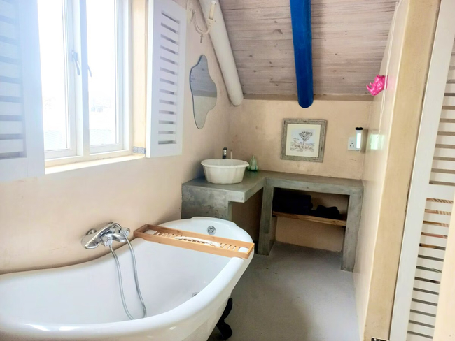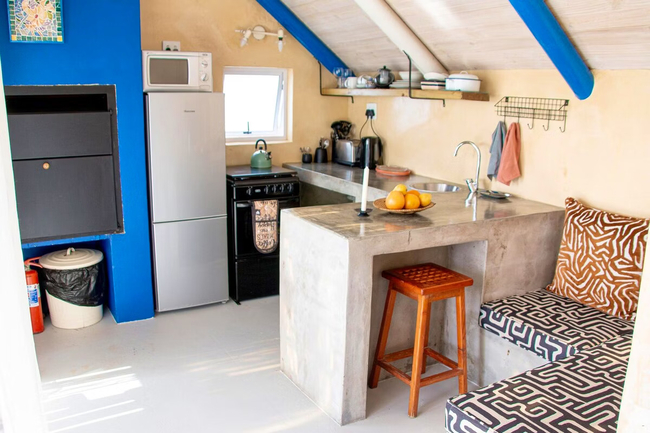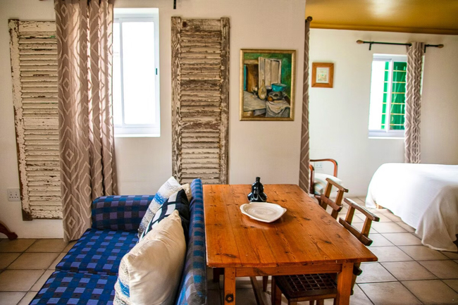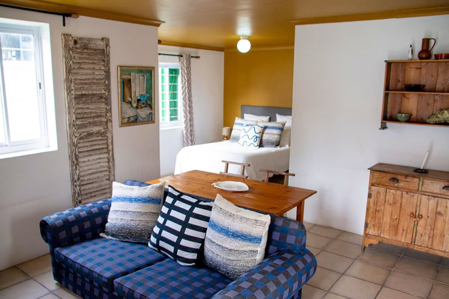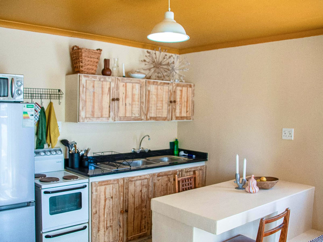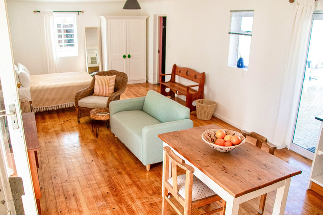 Die Opstal one-bedroom apartments in Paternoster each sleep two guests in a double bed. The en-suite bathrooms are fitted with a shower, toilet and basin. One of the bathrooms only has a bath. The open plan living areas have a fully equipped kitchen, lounge and dining table. Each apartment has Wi-Fi, a TV with DStv and braai facilities.