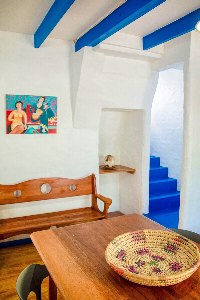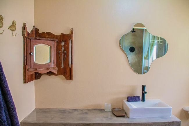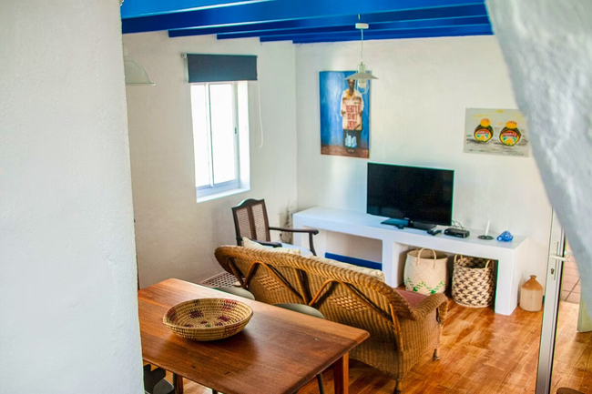 This duplex apartment, with its charming thatch roof, accommodates 2 guests. The upstairs bedroom is furnished with a double bed and includes an en-suite bathroom with a shower. The kitchen is fully equipped with a fridge-freezer, stove, oven, and microwave. In the living area, guests will find a 2-seater dining table, a comfy couch, and a TV with selected DStv channels. The apartment also provides access to a private braai area and a communal swimming pool.