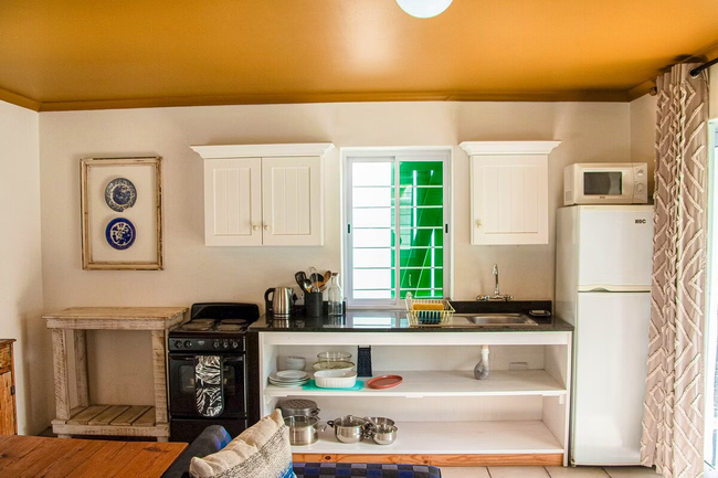 Perfect for a couple, this 1-bedroom apartment is furnished with a double bed and features an en-suite bathroom with a shower. The open-plan kitchen includes a fridge-freezer, stove, oven, and microwave. The living area offers a 2-seater dining table, a comfy couch, and a TV with selected DStv channels. Guests can enjoy access to a private braai area and a communal swimming pool.