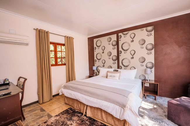 Deluxe Double room with all amenities. Rooms are spacious, en-suite with private balconies. Rooms have air-conditioning and DSTV (Limited Bouquet), and hairdryers are available on request. Easy access to gardens and large swimming pool.