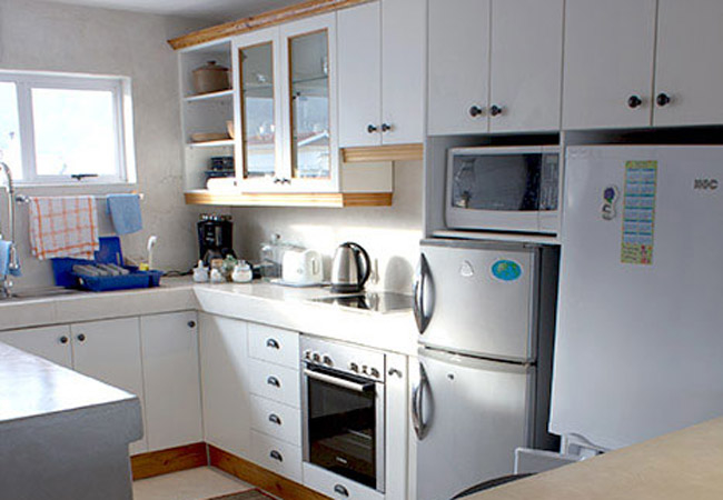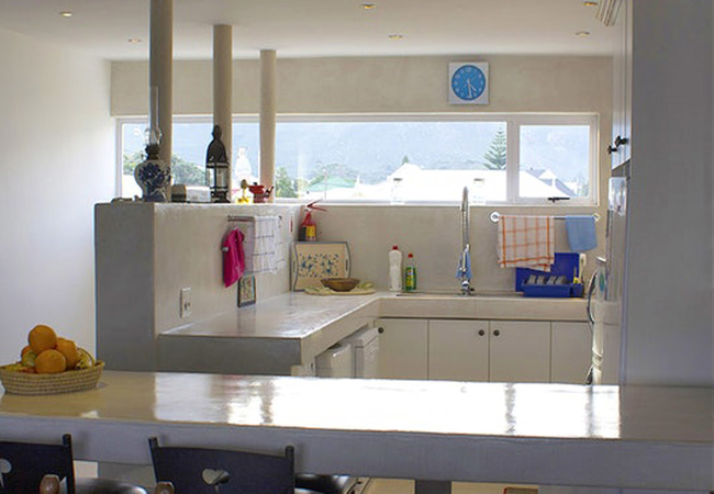 Spykerklip, the deluxe accommodation, is an upper level apartment which boasts an en-suite main bedroom with sea views and two bedrooms overlooking the Kogelberg mountain range. A second full bathroom serves the Mountain View bedrooms.