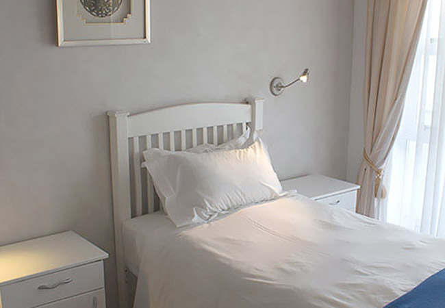 Drievis is a ground level apartment with 3 spacious bedrooms; the main bedroom has en-suite walk-in shower with toilet and wash basin and the single modern bathroom complete with an antique free standing bath and shower serves bedrooms 2 & 3. The main bedroom is sea facing and extends onto a patio overlooking the ocean.