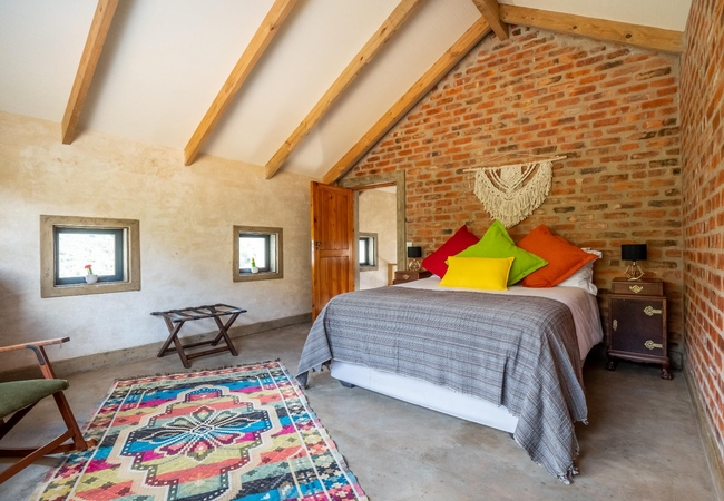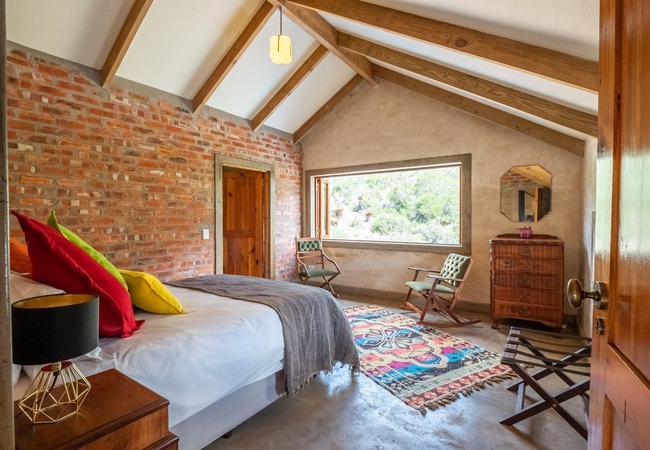 Die Sonvanger is a private, two-bedroom, off-the-grid unit complete with its own windpump. The main bedroom is furnished with a Queen-size bed and an en-suite bathroom fitted with a bath, shower, toilet and basin. The second bedroom is furnished with a double bed and an en-suite bathroom fitted with a shower, toilet and basin. The kitchen is fully equipped and the lounge has an indoor fireplace. At dusk, relax next to the crackling indoor fireplace and enjoy the books and board games provided. Its doors and windows open up to the wraparound verandah for days spent lounging by the private swimming pool. You can also enjoy the freedom of a private outdoor shower to give you an intimate experience with nature. Outside there is a gas braai and a private swimming pool. Die Sonvanger does have unlimited WiFi available, but you won't even need it while spending time connecting with friends, family and the nature around you.