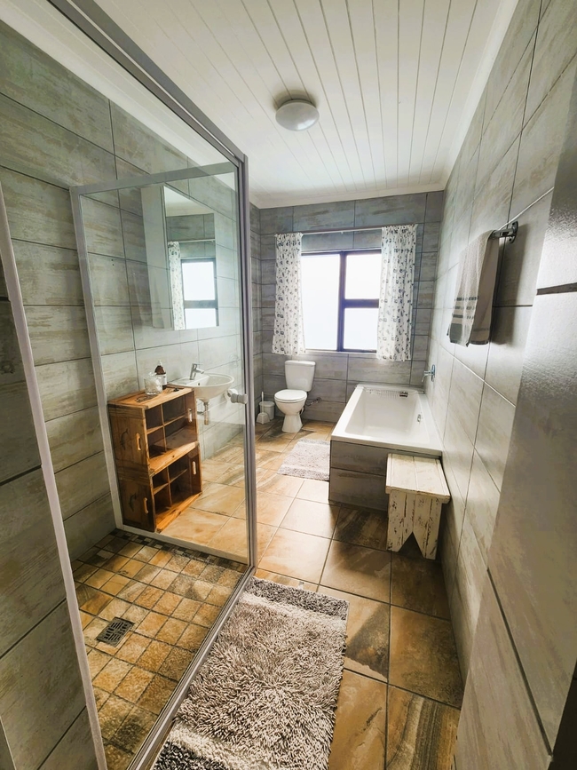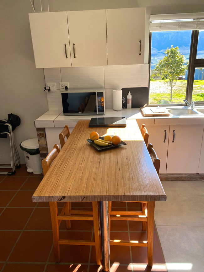 This charming cottage can host up to four guests, featuring a spacious bedroom with a queen-size bed and a double sleeper couch in the living area. The cottage includes a separate bathroom, equipped with both a bath and a shower, for shared use. The open-plan living area is designed for comfort, with a cozy seating area, a TV, an indoor braai, and a dining table. The kitchen is fully equipped with modern conveniences, including a fridge-freezer, stove, oven, microwave, and facilities for making coffee and tea. Complimentary Wi-Fi is available throughout the cottage. Outside, guests can enjoy a boma fire pit ideal for braais and social gatherings, as well as a soothing wood-fired hot tub. A hammock provides the perfect spot for lounging or reading, all while taking in the breathtaking views of the natural surroundings, offering a serene farm stay experience.