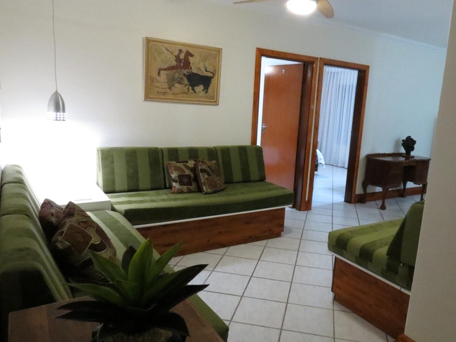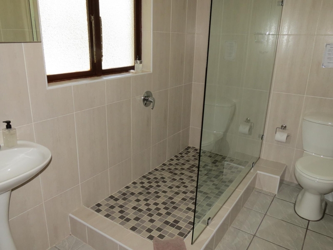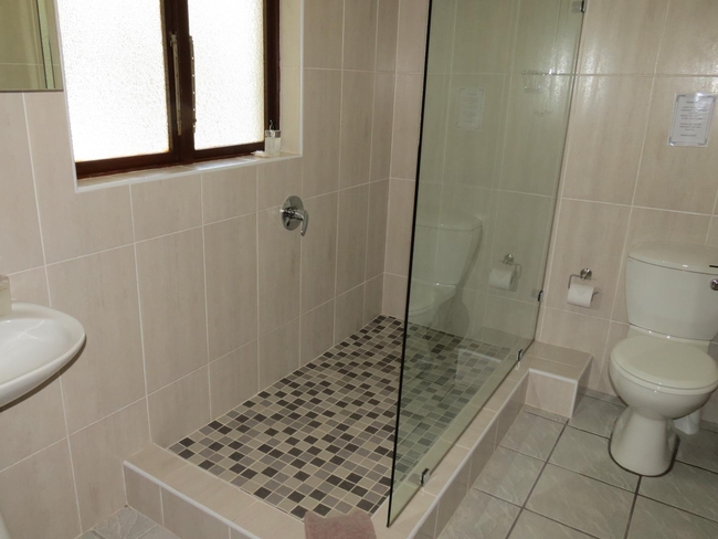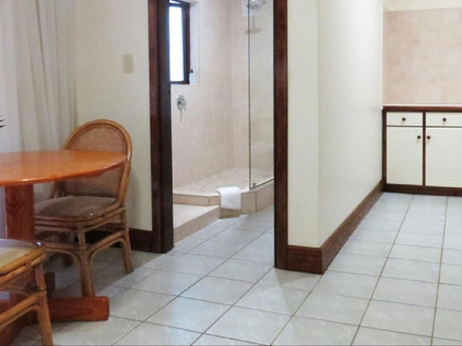 This spacious ground-floor family unit features two separate bedrooms, each with a double bed, and a large open-plan living area furnished with three couches that convert into single beds. Accommodating up to seven guests, the unit includes a functional kitchenette equipped with a microwave, refrigerator, and coffee and tea facilities. The shared bathroom is fitted with a walk-in shower, basin, and toilet. Guests can enjoy a wide range of amenities including complimentary Wi-Fi, a TV with DStv/Satellite channels, a ceiling fan, and a comfortable sitting area with a dining table and desk. The unit also offers feather pillows, peaceful garden views, and daily cleaning service. Additional conveniences include wake-up call options, bathroom essentials, an iron and ironing board. This unit is strictly non-smoking.