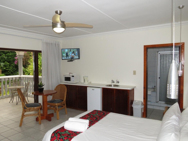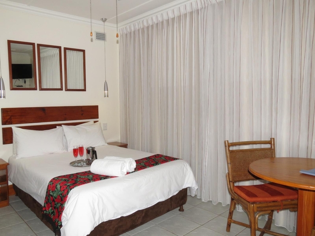 The accommodation comprises a selection of tastefully furnished en-suite rooms, each designed for comfort and convenience. Guests can expect thoughtful touches such as a television with DStv, a bar fridge, a kitchenette, and tea and coffee-making facilities. Several rooms also open out onto private balconies or offer tranquil garden views, making them perfect for unwinding. With high-quality linen, ceiling fans, and refined decor, every room promotes a relaxed and restful atmosphere.