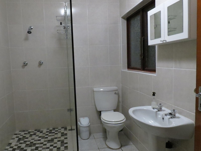 Located on the first floor, this comfortable suite features a double bed and a built-in couch, making it suitable for up to three guests. The en-suite bathroom is equipped with a separate bath and shower, basin, and toilet. A compact kitchenette includes a microwave, bar fridge, and coffee and tea facilities, providing convenience for light self-catering. The suite opens onto a shared balcony with serene garden views. Guests can enjoy complimentary Wi-Fi, a TV with DStv/Satellite channels, and a ceiling fan for added comfort. The suite also includes a sitting area, dining table, desk, and feather pillows. Additional amenities include daily cleaning service, wake-up calls, a bathrobe, ironing facilities, and a selection of bathroom essentials. This suite is strictly non-smoking.
