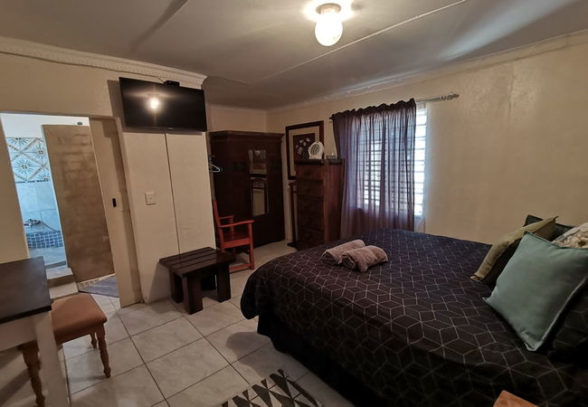 Die Wit Huis Cottage is a self catering holiday cottage in Parys sleeping four guests. The bedroom is furnished with a double bed and there are two single beds in the open plan living area. The bathroom is fitted with a bath with a shower attachment, toilet and basin. The living space has a breakfast bat counter with bar stool where you can enjoy your meals and a fully equipped kitchenette with a fridge / freezer, oven / stove, microwave, kettle, crockery and cutlery etc. The cottage has a private entrance and shade net parking.