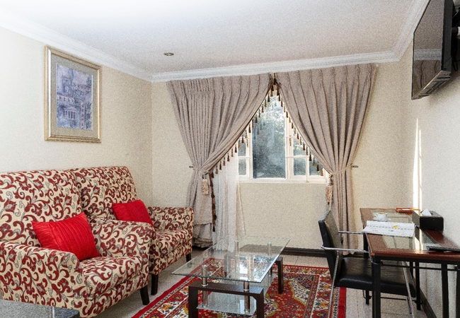 Luxury 1 bedroom suite, which features a separate sitting area. This unit includes beautiful luxury finishes. All our rooms are en-suite and feature air-conditioning, LCD TV, free Wi-Fi, coffee / tea making facilities, a work station, hairdryer and international plugs. Ironing facilities are available on request.