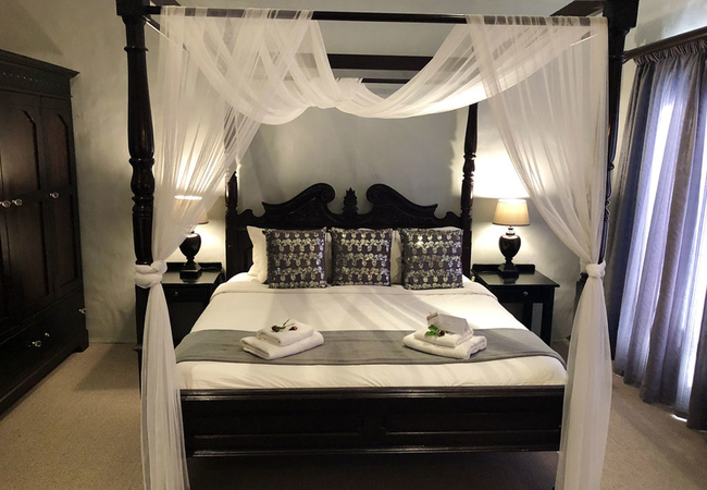 Honeymoon Suite with a King size bed. Open bath and shower with separate toilet. Lounge, fire place. Big balcony with garden furniture that overlooks the indigenous garden, Koi ponds and swimming pool. Amazing breaker views. Water sport on the lagoon and horse riding on the beach can be viewed out of this room. All rooms are equipped with air-conditioning, DStv, high speed internet access, mini bar, coffee / tea tray and a personal safe. Each room has a balcony with beautiful views.