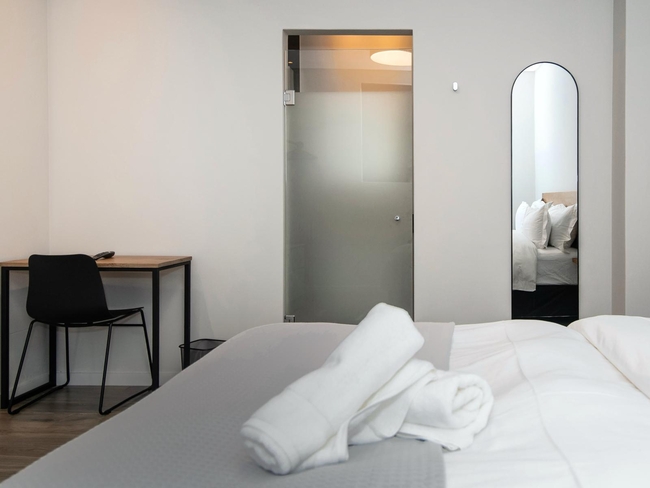 Our deluxe double room combines comfort and convenience, making it an ideal choice for your stay. The room features a plush double bed, an en-suite bathroom with a shower, and all the necessary amenities to enhance your experience. Enjoy breathtaking city views and stream your favorite shows on the Smart TV with Netflix. A dedicated workspace with high-speed Wi-Fi ensures you can stay productive during your visit. Guests also have access to a communal kitchen for added flexibility. Additional conveniences include a ceiling fan, a portable fan, a hairdryer, an iron, and converters or voltage adaptors. Please note that the room is non-smoking, and bathroom essentials are thoughtfully provided for your comfort.