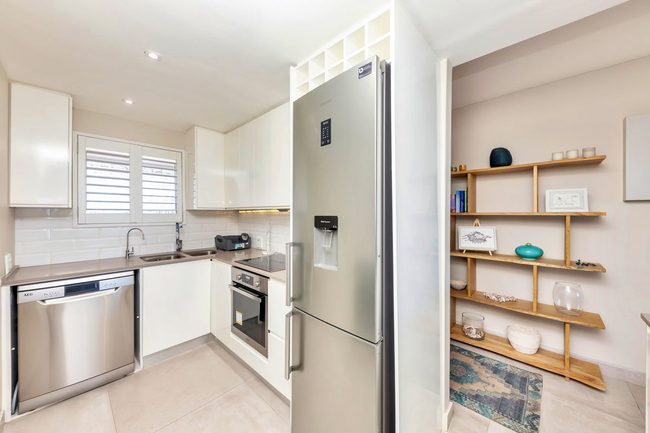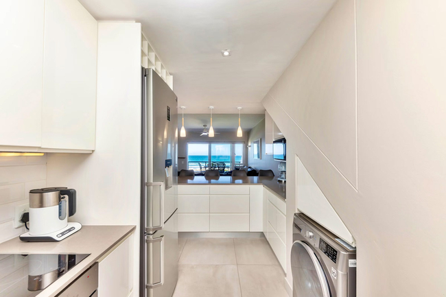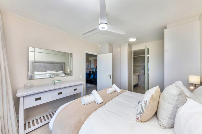 Dolphin Beach H205 comfortably accommodates up to four guests in two beautifully appointed bedrooms, each furnished with a queen-size bed and accompanied by a private en-suite bathroom featuring a shower, basin, and toilet. Fresh linen and soft towels are provided to ensure a restful stay. The kitchen is modern and thoughtfully designed, equipped with everything required for effortless self-catering, including a fridge-freezer, stove, oven, and microwave. Essential cutlery and crockery are provided, along with tea and coffee-making facilities. For added convenience, the space also includes a dishwasher and a washing machine. A central breakfast island with stools creates a natural gathering point, flowing easily into the inviting lounge where plush seating and a flat-screen TV provide the ideal setting for relaxation. The living area extends onto a private balcony, where guests can dine al fresco while enjoying the fresh sea air and uninterrupted views of Table Mountain’s iconic outline. A gas braai is available, turning every meal into an experience enhanced by the sound of waves rolling against the shore and the striking beauty of the Atlantic horizon. For peace of mind during power interruptions, the apartment is fitted with a full inverter system, ensuring uninterrupted electricity throughout your stay. The complex offers a variety of facilities designed to enhance your holiday. Guests have access to a communal swimming pool, a welcoming restaurant, and a beautifully maintained garden. Around-the-clock security provides added reassurance, allowing you to relax with complete confidence.
