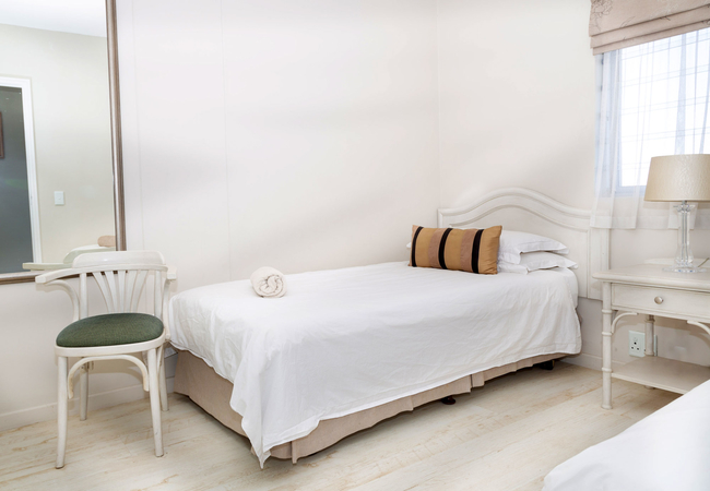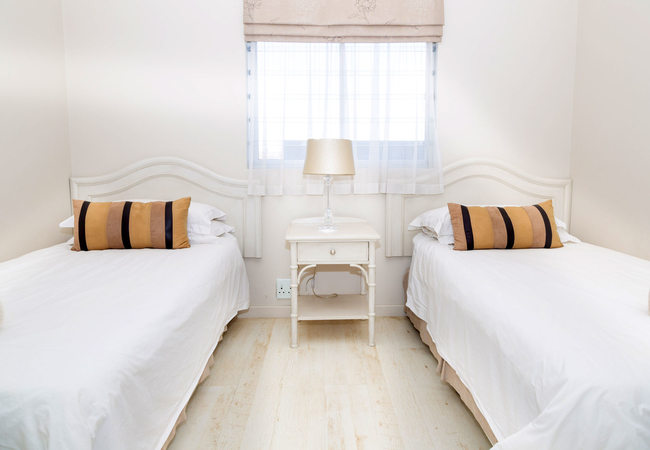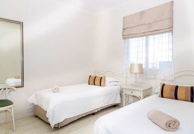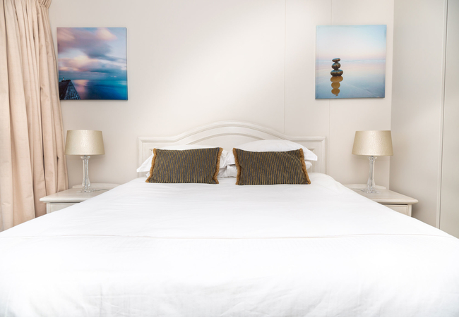 The main bedroom is fitted with a double bed and an en-suite bathroom with a bath / shower, toilet and a basin. The second bedroom has two single beds and makes use of the second bathroom that has a shower, toilet and a basin. The rooms all have plenty of cupboard space and bathroom towels and bed linen is provided.