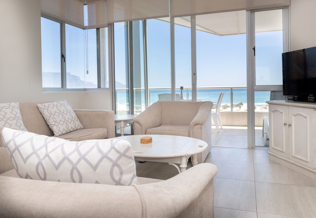 Dolphin Beach H208 in Table View ion the second level of the Dolphin Beach complex, providing holiday accommodation in Cape Town for four guests. Guests are able to see splendid views of the ocean as well as Table Mountain.