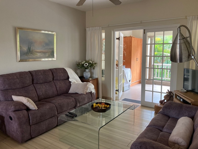Dolphin Escapes is situated on the first floor of the complex (there is elevator access), the open plan unit has a spacious veranda and a comfortable lounge. TV is provided but please bring your own decoder for DStv access. There is a fully equipped kitchen with a washing machine. Fans are provided throughout the apartment.