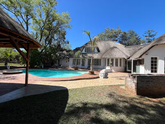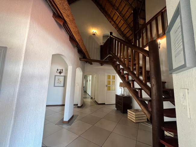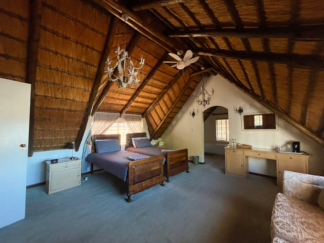 Situated in Douglasdale, Douglas Lodge is a moderately large thatched building set over two floors. The lodge is conveniently located for access to Monte Casino (1km), Fourways Mall (3km), Sandton (10km) and the Dome (10km). OR Tambo International Airport is 45kms away and Lanseria International Airport is 20kms away.