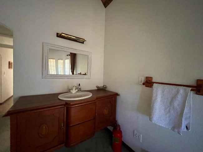 The house has a fully equipped kitchen for all your self catering needs. There is a large meeting room furnished with a boardroom table and eight chairs. There is also a sun lounge and dining area which opens onto the pool area. These rooms have a fireplace for chilly winter nights. The lounge, which also has a fireplace is furnished with sofas for six people. The lounge is equipped with DStv.