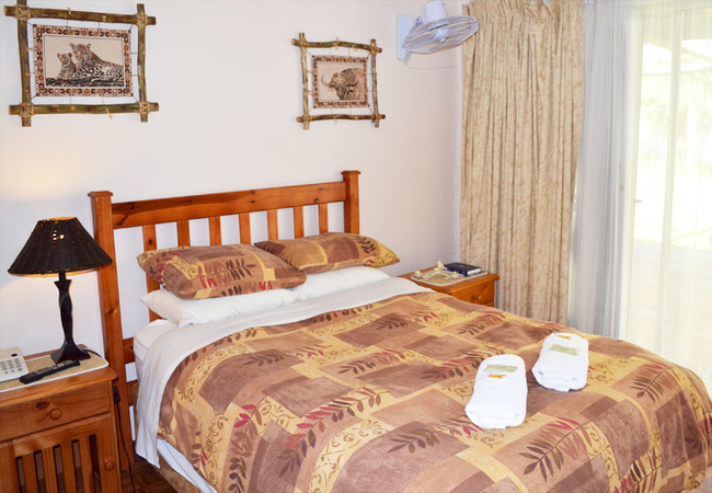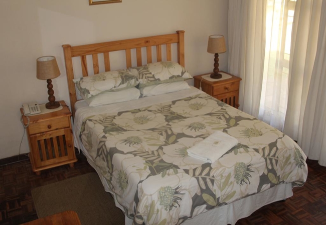 Double Rooms are furnished with one double bed (Please request Twin beds after confirming your booking, if required). Rooms have a private entrance, en-suite bathroom equipped with a hand basin, toilet and a shower. Other facilities include coffee and tea facilities, a telephone service, TV with DStv, security gates and a dining room / lounge. Secure parking is available on site.