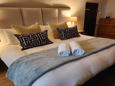 The Sani Top Luxury Unit is a beautifully appointed double-story accommodation with its own private entrance and access to a serene courtyard. Upstairs, guests will find a spacious king bedroom offering breathtaking views, a well-equipped bathroom, and a private lounge featuring a twin sleeper daybed—perfect for relaxing or accommodating an extra guest. The unit is designed for comfort and convenience, offering a range of amenities including Wi-Fi, TV, Netflix, a desk, fireplace, electric blanket, and feather pillows. Guests can also enjoy a full kitchen, coffee and tea facilities, a bar fridge, and bathroom amenities. Outdoor features include a balcony, garden, outdoor furniture, and braai/barbecue facilities, making it an ideal choice for both relaxation and entertaining. Daily cleaning service is included for added comfort.