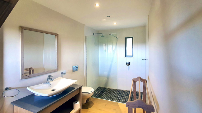 This off-grid villa provides spacious, solar-powered self-catering accommodation designed for guests seeking both privacy and peace. The villa features three beautifully appointed bedrooms, each with a queen-size bed and a private en-suite bathroom. Every bathroom is fitted with a gas-powered shower, a toilet, and a washbasin, ensuring both convenience and sustainability. The home comfortably accommodates up to six guests, making it ideal for families or small groups. The open-plan kitchen and living area form the heart of the villa. The kitchen is fully equipped with modern essentials, including a fridge-freezer, microwave, oven, gas stove, dishwasher, and a complete range of crockery, cutlery, and tea- and coffee-making facilities. The adjoining lounge offers a comfortable seating area and a dining table, creating an inviting space to relax or share meals together. From the living area, doors open onto a spacious balcony furnished with outdoor seating and a braai area, where guests can enjoy the tranquil surroundings and fresh coastal air. Secure parking is provided, and the villa is only a short walk from a secluded beach, perfect for quiet strolls or sunset views.