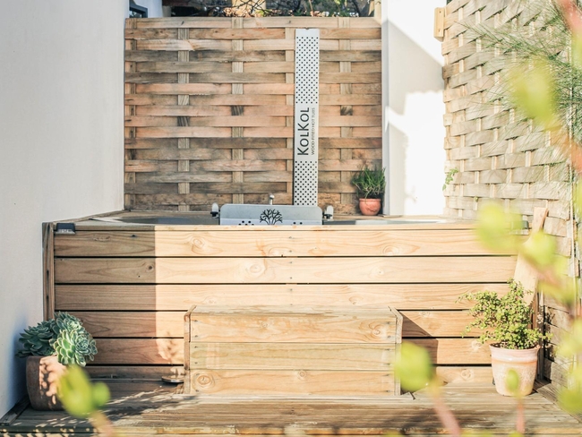Outside, the private patio with a fireplace is perfect for enjoying sunsets over the mountains or a friendly game of cards. Just a short walk from the patio, you'll find our secluded guest pool area, complete with pergolas and pool loungers—an excellent spot for a lunchtime picnic. The on-site restaurant features a jungle gym, and the farm's donkeys, cows, and horses in the paddocks promise to keep the little ones entertained for hours.
