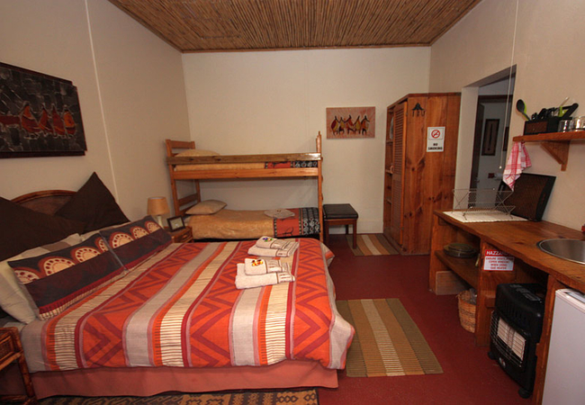 The Family Room is furnished with a double bed and a bunk bed, suitable for a family. Self-catering furnished units with en-suite bathrooms. Each room has a kitchenette with a stove, fridge / freezer and necessary crockery.