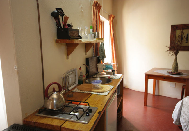 The Double Room is furnished with a double bed suitable for two adults. Self-catering furnished units with en-suite bathrooms. Each room has a kitchenette with a stove, fridge / freezer and necessary crockery.