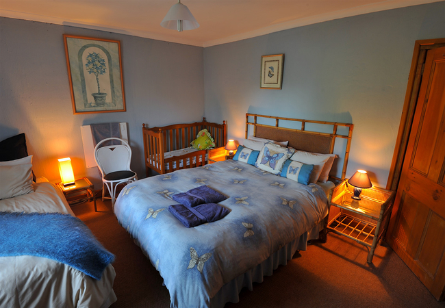 The Blue Room - double bed, single bed and cot, with full en-suite bathroom