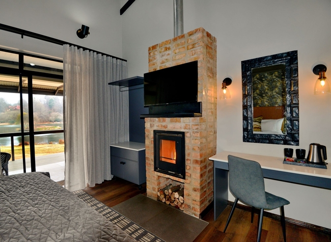 The Luxury Rooms are located on the ground floor and furnished with King-size beds. The en-suite bathroom is fitted with a walk-in shower, toilet and basin. Each room has a safe, hairdryer, coffee station, fireplace, smart TV and a patio.