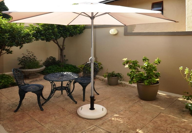 This Studio Apartment is cosy with modern finishes. It boasts a full kitchen, a large bath tub and a separate shower. Other facilities include a flat screen TV, DStv and ample cupboard space. The lovely private garden has a fire pit, garden furniture and an umbrella.