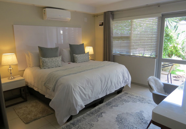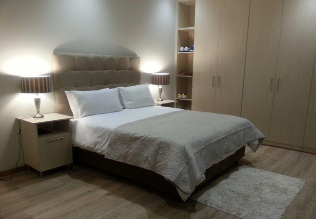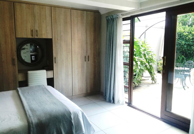 This Luxury Garden Suite with a private garden boasts a fully equipped kitchen, King size bed, walk in closet with ample cupboard space, flat screen TV, full DStv, Netflix and an Explorer decoder. The bathroom has a large bath tub and a separate shower. It is ideal for long-term stays, but is currently also available for short stays.