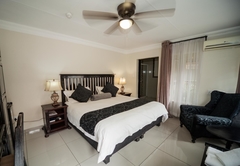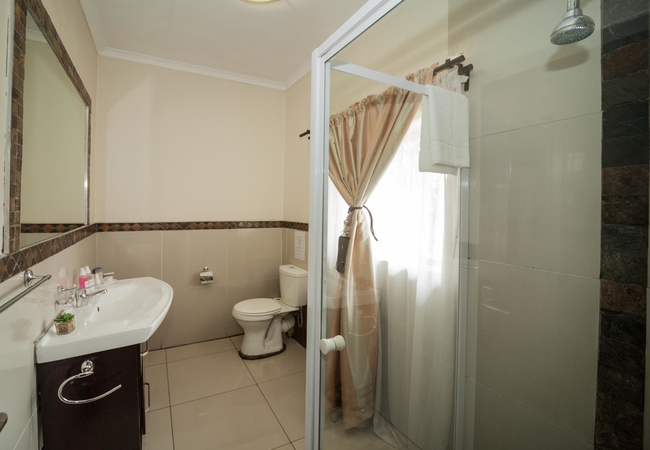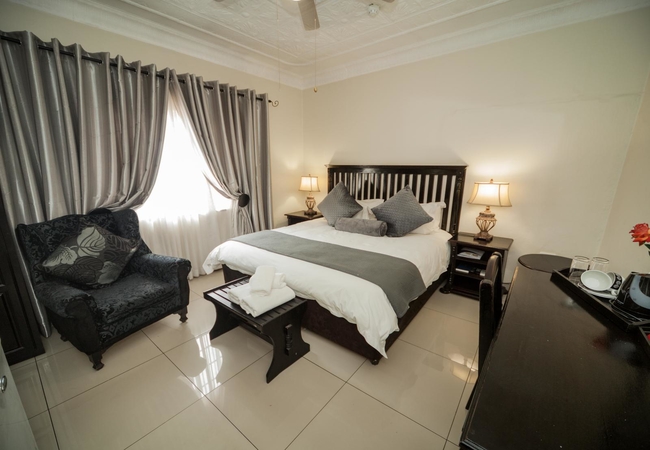 The Twin rooms are furnished with two single beds or a King-size bed if preferred and have an en-suite bathroom. All rooms have a flatscreen TV with SABC channels, tea / coffee making facilities, air conditioning and a bar fridge.