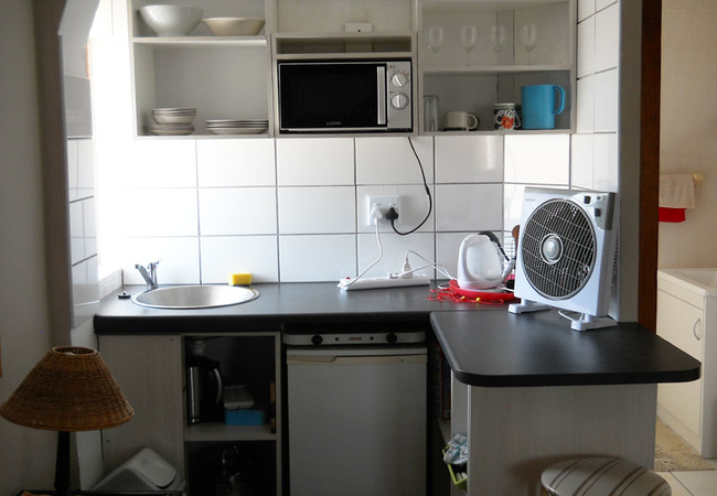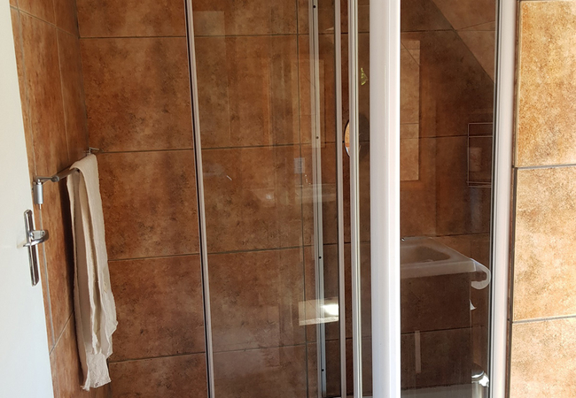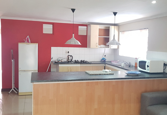 The room is upstairs and has a stunning view of Tygerberg Hill. The room is furnished with either a double bed or two single beds and has an en-suite bathroom with a shower and a hand wash basin. There is a small fully equipped kitchenette with a one plate gas stove, mini bar fridge, microwave, kettle, crockery and cutlery. The room is equipped with free fibre Wi-Fi and an LCD TV with Netflix. Secure parking behind a motorised gate is provided.