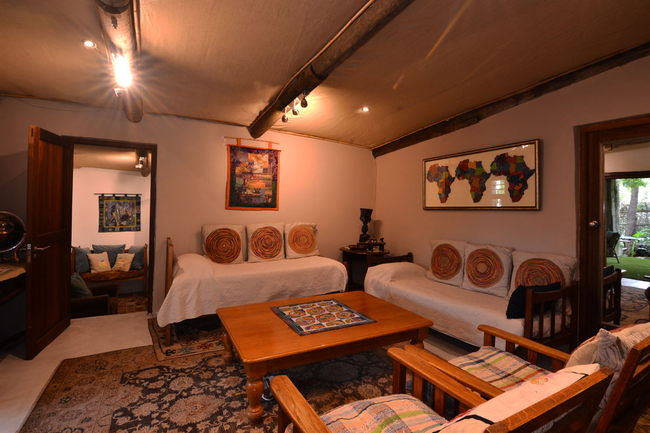 Earth Cottage is a self catering holiday cottage in Hermanus with a relaxed, old-world theme. Rich wood, Persian and African carpets and other natural fabrics and textures contrast sharply with the crisp white linens and towels welcoming you.