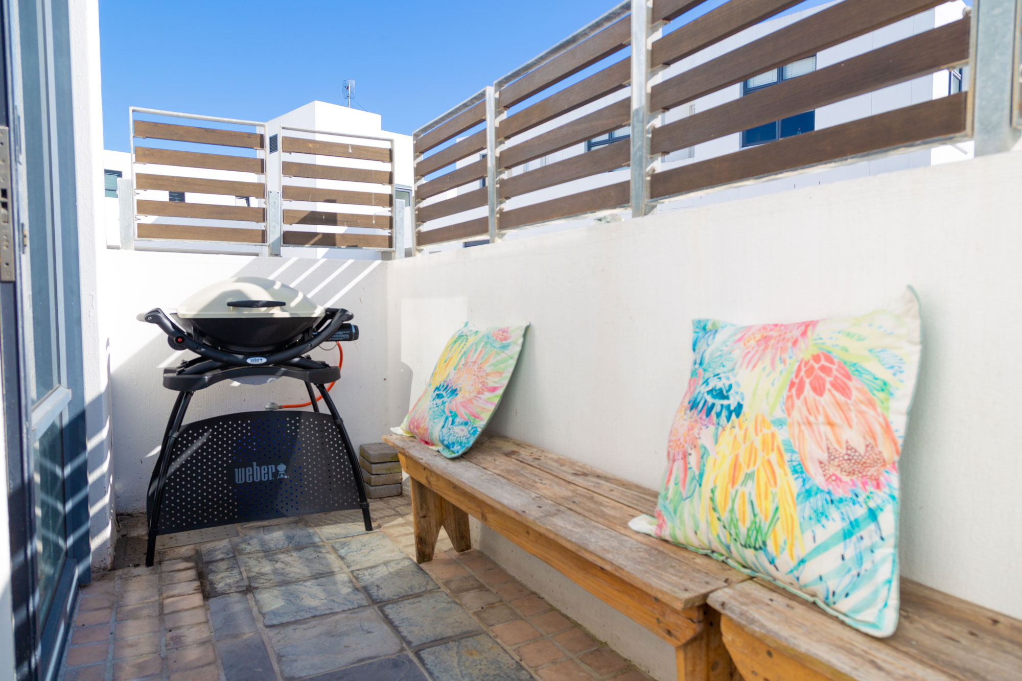 Eden On The Bay 183 is located in Bloubergstrand and is a two bedroom apartment that is able to accommodate up to four guests. Eden On The Bay 183 is a self catering holiday apartment fitted with two bedrooms and two bathrooms. The main bedroom has a Queen-size bed, access to the balcony and an en-suite bathroom with a shower, basin and a toilet. The second bedroom has twin beds and makes use of the shared bathroom with a toilet, basin and a shower. The loft upstairs is able to sleep up to two children on a sleeper couch. Bed linen and bathroom towels are provided. The kitchen is fully equipped and consists of a stove, oven, microwave, fridge / freezer, cutlery, crockery, tea / coffee making facilities and there is a breakfast nook with seating where guests can enjoy their meals. The living area has comfortable seating and a TV with DStv. On the verandah, guests can relax on the outdoor furniture and make use of the BBQ / braai facilities.