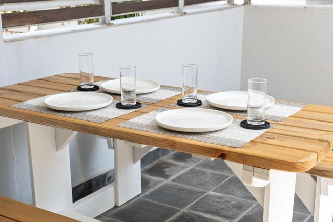 This elegant apartment provides a spacious bedroom, complete with a comfortable Queen-sized bed and an en-suite bathroom that includes both a bath and a shower. The unit is strictly non-smoking and comes with outdoor furniture for added relaxation.