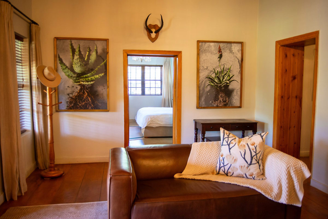 The land itself tells stories, traces of ancient Bushman rock art are hidden among dramatic rock formations and seasonal waterfalls. Crystal-clear natural springs breathe life into the surroundings, supporting a rich diversity of indigenous trees, flowering fynbos, and vibrant birdlife. The farm’s ecosystem thrives with both small and large wildlife, from tortoises, butterflies, and bush birds to well-adapted game species such as eland, gemsbok, kudu, sable, zebra, springbok, giraffe, ostrich, blesbok, and many more.