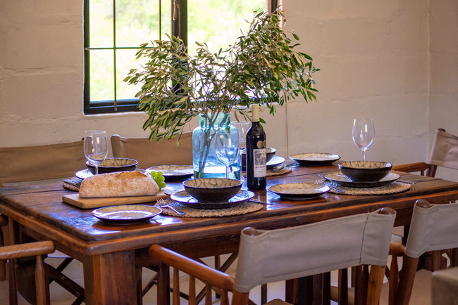 The Farmhouse comfortably accommodates up to six guests and features three bedrooms, furnished with a combination of queen-size and single beds. The bathroom includes a walk-in shower, double wash basin, and toilet, offering both practicality and comfort. This charming home is equipped with free Wi-Fi, a cosy sitting area, and a dining table, making it ideal for families or small groups. Additional comforts include a ceiling fan, heater, fireplace, and electric blankets for chilly evenings. The fully equipped kitchen includes an oven, microwave, refrigerator, bar fridge, toaster, and tea- and coffee-making facilities, perfect for self-catering stays. Outdoors, guests can enjoy peaceful garden and river views from the patio, which is furnished for relaxation and includes a dedicated outdoor dining area and braai facilities. The farmhouse is non-smoking, serviced regularly, and fitted with a secure safe for added peace of mind.