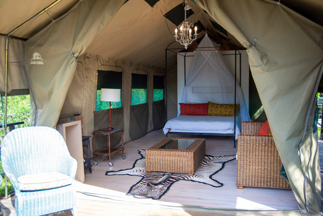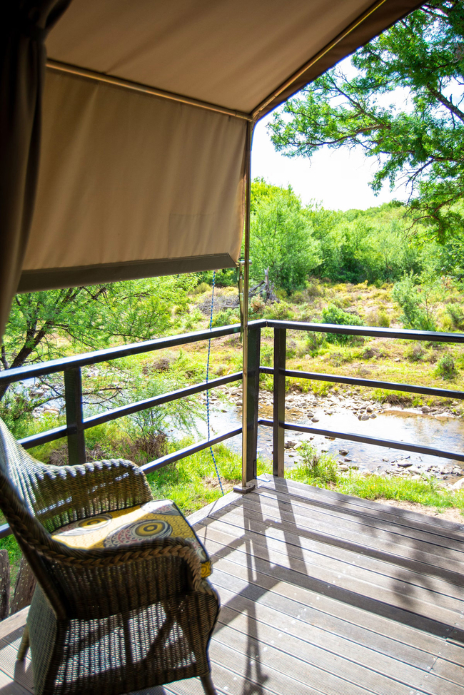 The River Lodge, including two nearby tents, offers off-the-grid accommodation for up to 10 guests. The main lodge features three double bedrooms that share a bathroom, along with an open-plan lounge, a fully equipped kitchen, and a cosy fireplace. A bar and entertainment area flow onto a spacious patio overlooking the river and garden, perfect for relaxed gatherings. Located approximately 100 metres from the main lodge, the two tents offer a rustic yet comfortable extension to the accommodation. Guests have access to free Wi-Fi, and the lodge is fitted with a dining area, safe, and heating options for cooler evenings. The kitchen includes an oven, toaster, bar fridge, refrigerator, and tea- and coffee-making facilities, ensuring a well-rounded self-catering experience. Outdoors, guests can enjoy the furnished patio, an alfresco dining area, and braai facilities, all set against a tranquil backdrop of garden and river views. This is a non-smoking property.